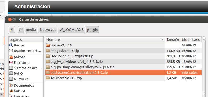 Examinamos en nuestro ordenador, y seleccionamos el plugin para instalarlo.