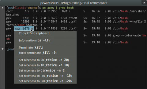 Final term sabe qué partes de la salida del terminal representan los nombres de archivo, los PID, URLs web o direcciones IP y proporciona comandos sensibles al contexto para cada uno de ellos.