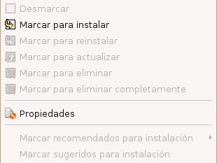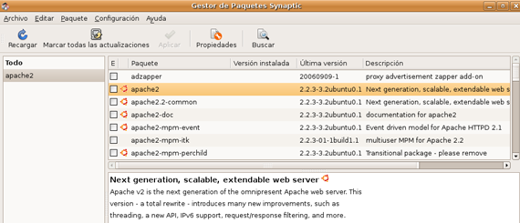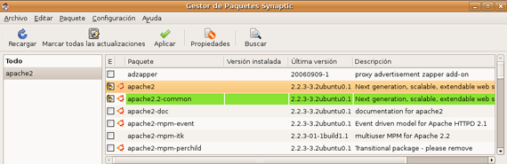 haciendo clic con el botón derecho del ratón sobre “apache2”, seleccionamos “Marcar para instalar”.