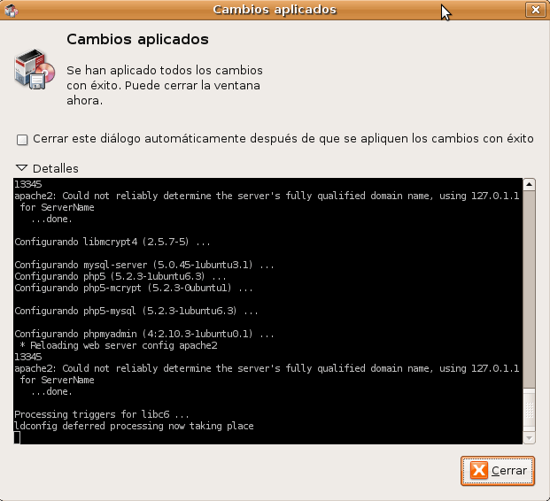 Finalizada la instalación, y aplicados los cambios, cerramos el cuadro de diálogo de “Synaptic”.