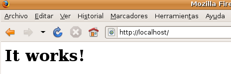 En nuestro navegador ya podemos probar que tenemos el servidor funcionando, escribimos la URL “http://localhost” y el sistema indica que Apache funciona correctamente.