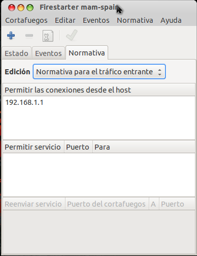 Abrimos firestarter o la interfaz de cortafuegos que manejamos.
