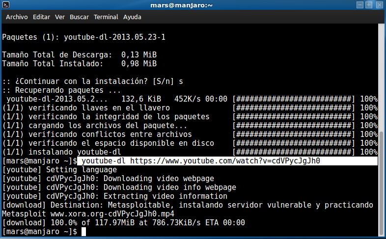 youtube-dl es un programa de línea de comandos pequeño para descargar videos de YouTube.com y algunos sitios más. Se requiere que el intérprete de Python sea (2.6, 2.7, o 3.3 +), y no es específica de una plataforma. Se puede utilizar tanto en Unix, WIndows y OS X. Es liberado al dominio público, lo que significa que usted puede modificarlo, redistribuirlo o utilizarlo como más te guste.