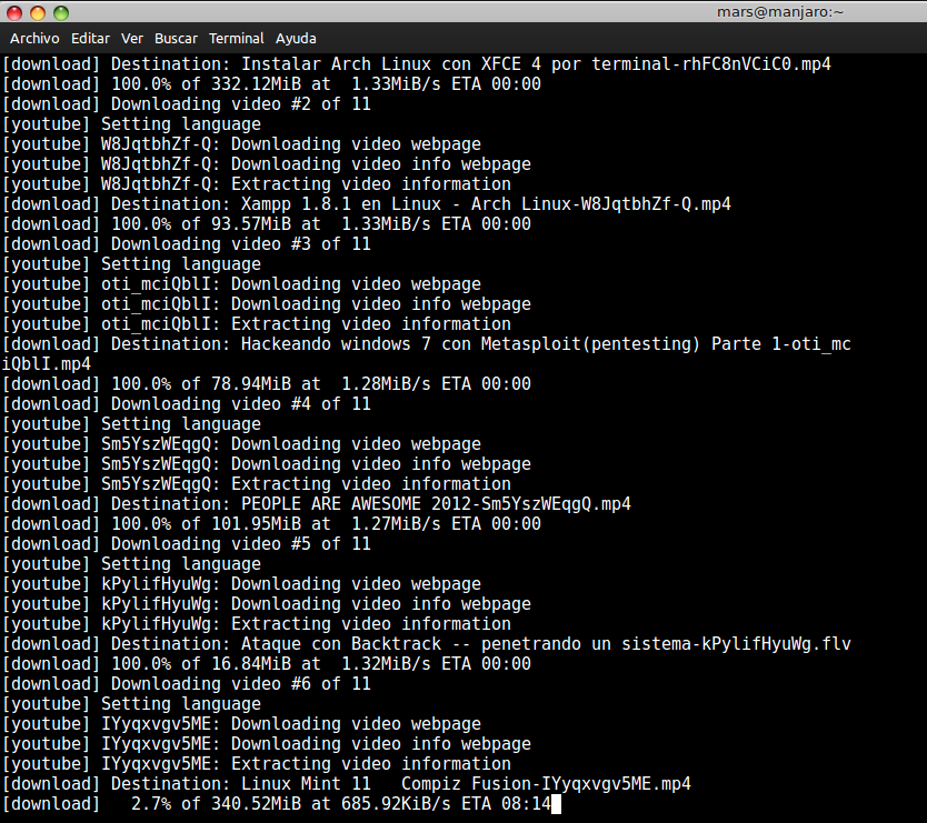 Nos descargará uno por uno todos los videos que estén dentro del archivo de texto videos .
