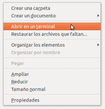 Sí , varias distribuciones de linux llevan esta utilidad de serie pero por ejemplo ubuntu 12.04 no la trae. Es muy útil porque mientras navegamos por los directorios podemos abrir una consola con la ruta ya iniciada. Esta aplicación nos añade en el botón derecho ABRIR TERMINAL AQUÍ.